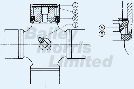 The grease is forced into the distribution channel 2 via the tapered lubricating nipple 1 and transferred to the universal joint bushes